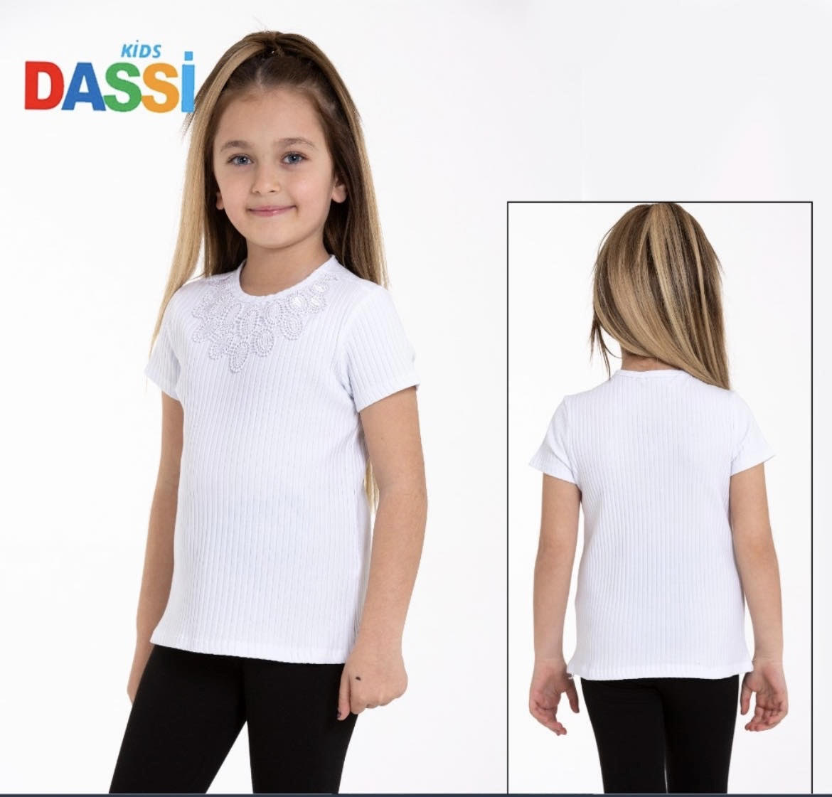 Kołnierzyk ozdobiony delikatną koronką (gipiurą) nadaje bluzce eleganckiego i dziewczęcego wyglądu.