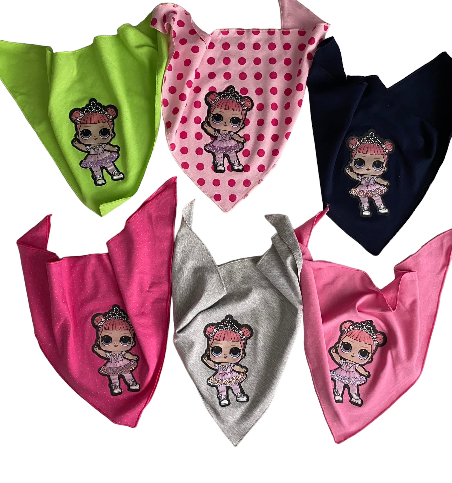 *różowa w kropki, szara, granat