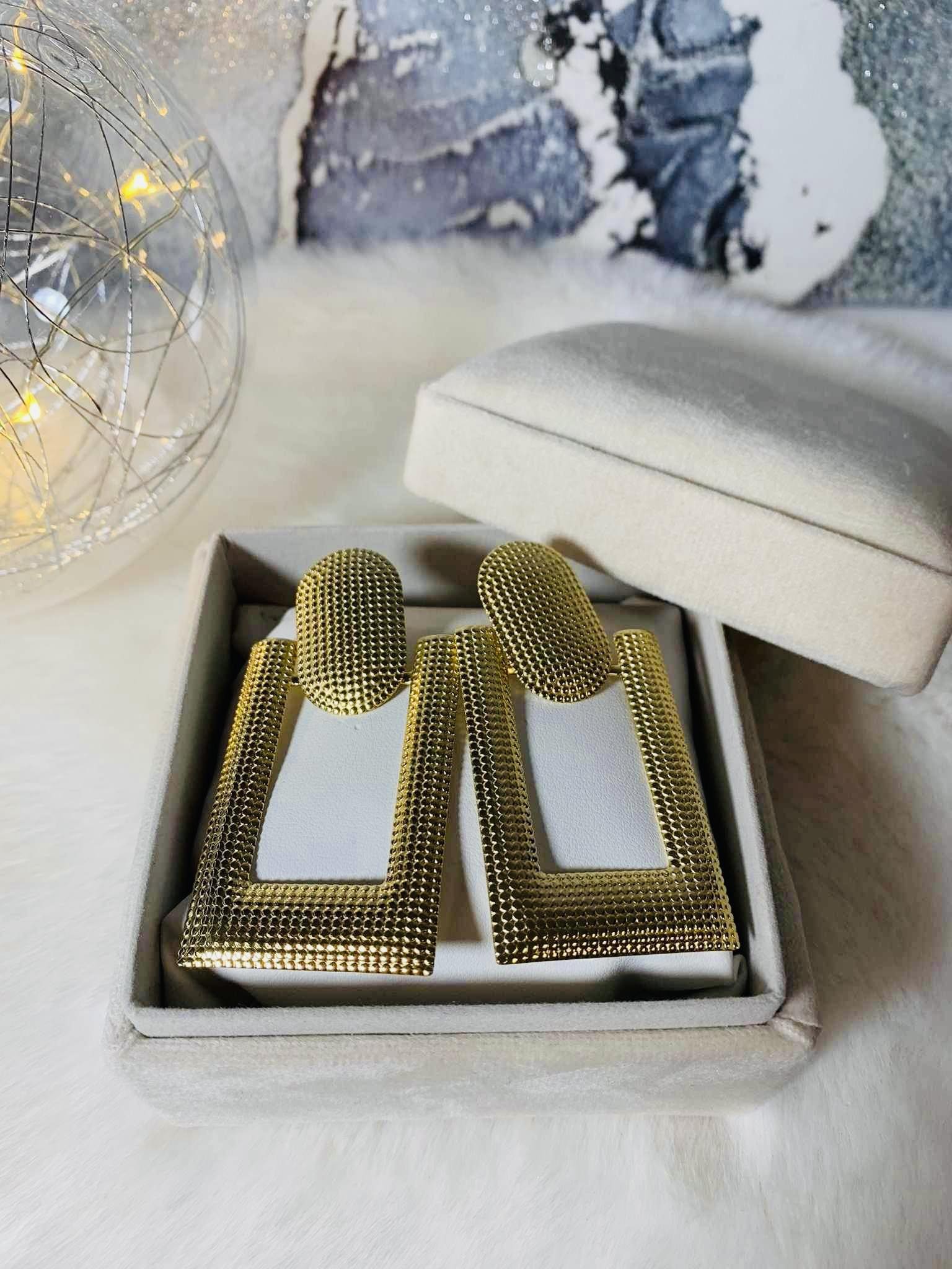 Cudowne kolczyki w kształcie prostokąta, są doskonałym dodatkiem do każdej stylizacji. Te wyjątkowe kolczyki są wykonane z wysokiej jakości stali chirurgicznej, co gwarantuje ich trwałość i wytrzymałość.