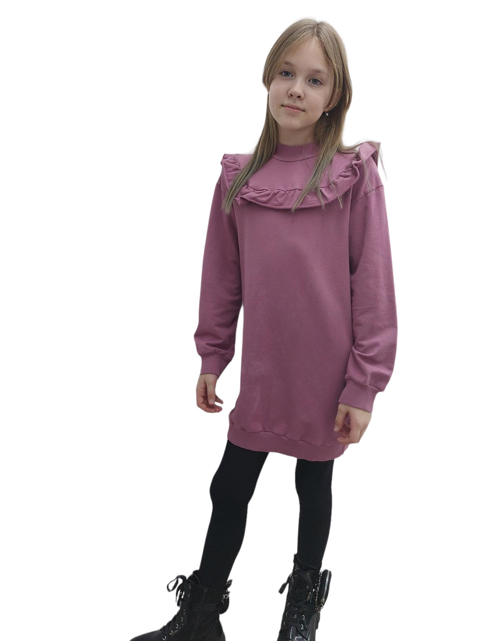 Fioletowa tunika z falbaną - elegancki i modny dodatek do garderoby. Ta stylowa tunika w kolorze fioletowym zapewni wyjątkowy wygląd i podkreśli indywidualny styl. Wykonana z wysokiej jakości materiałów, ta tunika jest nie tylko piękna, ale również wygodna w noszeniu. Jej wyjątkowy krój z falbaną dodaje lekkości i dziewczęcego uroku. Idealna na co dzień. Może również służyć jako sukienka. Ubierz dziecku do rajstop lub legginsów Kliknij teraz, aby dodać tę fioletową tunikę z falbaną do swojej kolekcji!