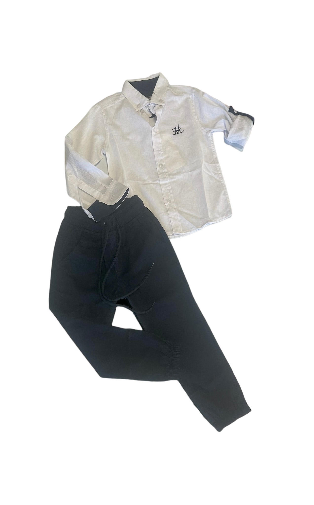 granatowe spodnie + biała koszula