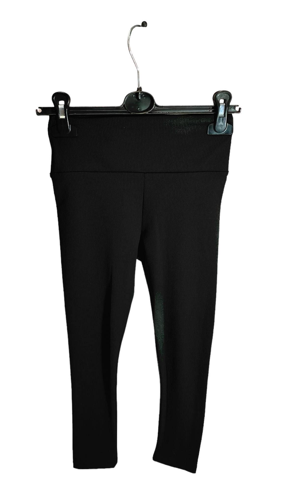 Legginsy prążkowane z przyjemnego materiału w kolorze czarnym z szeroką gumą w pasie.