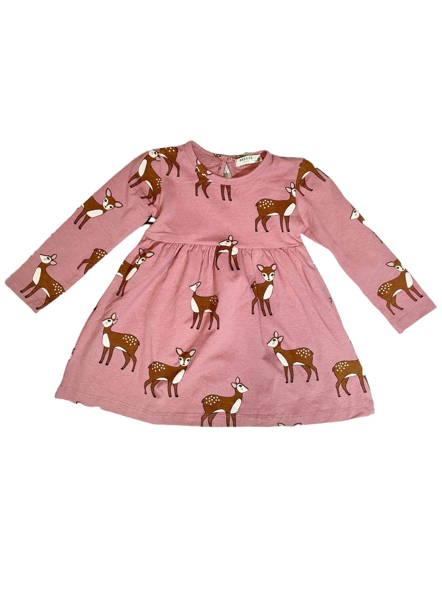 Sukienka bawełniana w kolorze brudnego różu w sarenki.